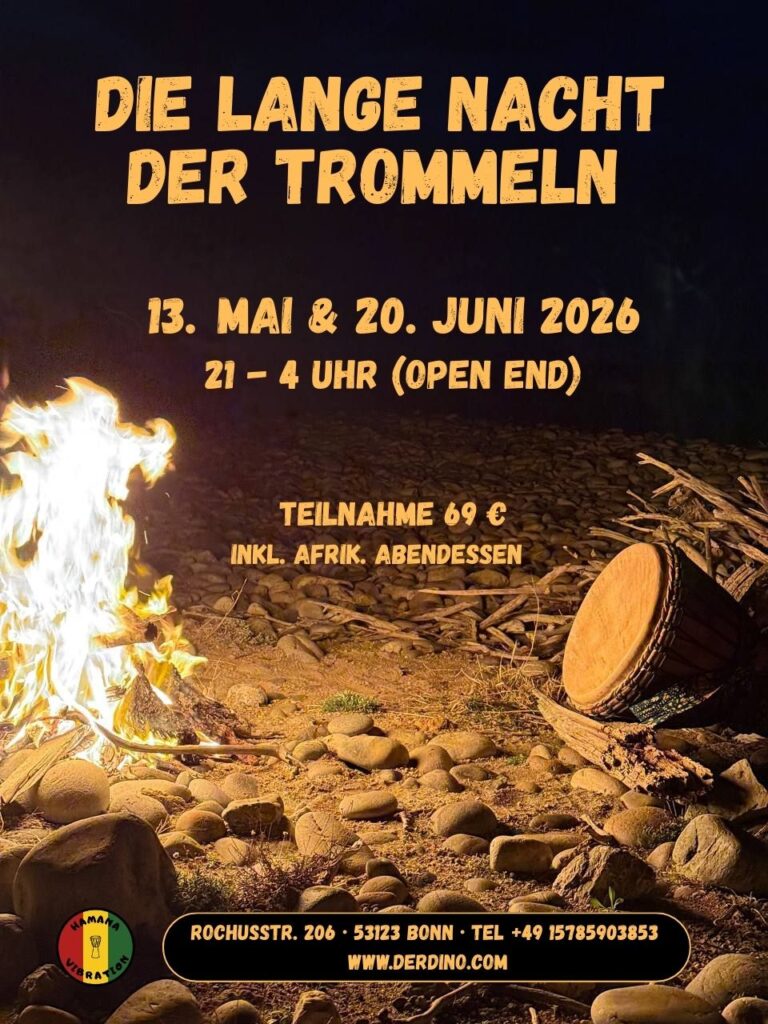 beim Dorffest spielen die Dorfmusiker verschiedene Rhythmen, wozu wir gemeinsam dazugehörige Lieder singen, klatschen und uns passend zum jeweiligen Rhythmus bewegen, (im Takt laufen, einfacher Grundschritt) oder auch tanzen.Weiterhin können zu den versch. Trommeln (Djembés und Basstrommeln) auch verschiedene Kleinpercussion-Instrumente (Kodo Kodo, Rasseln, Karignan u.a.) gespielt werden, so wie es auch in einem afrikanischen Dorf läuft.Denn dort spielen die Trommler nicht für sich allein, sondern das ganze Dorf ist mit den Händen, mit dem Körper und/oder mit der Stimme/Begleitinstrumenten aktiv am Rhythmus beteiligt.Das macht Spaß und bringt ganz nebenbei auch noch den gewünschten Effekt des “Rhythmus-Fühlens” mit sich!Die aktive Teilnahme ist freiwillig, gerne kannst Du auch nur zuschauen und zuhören.